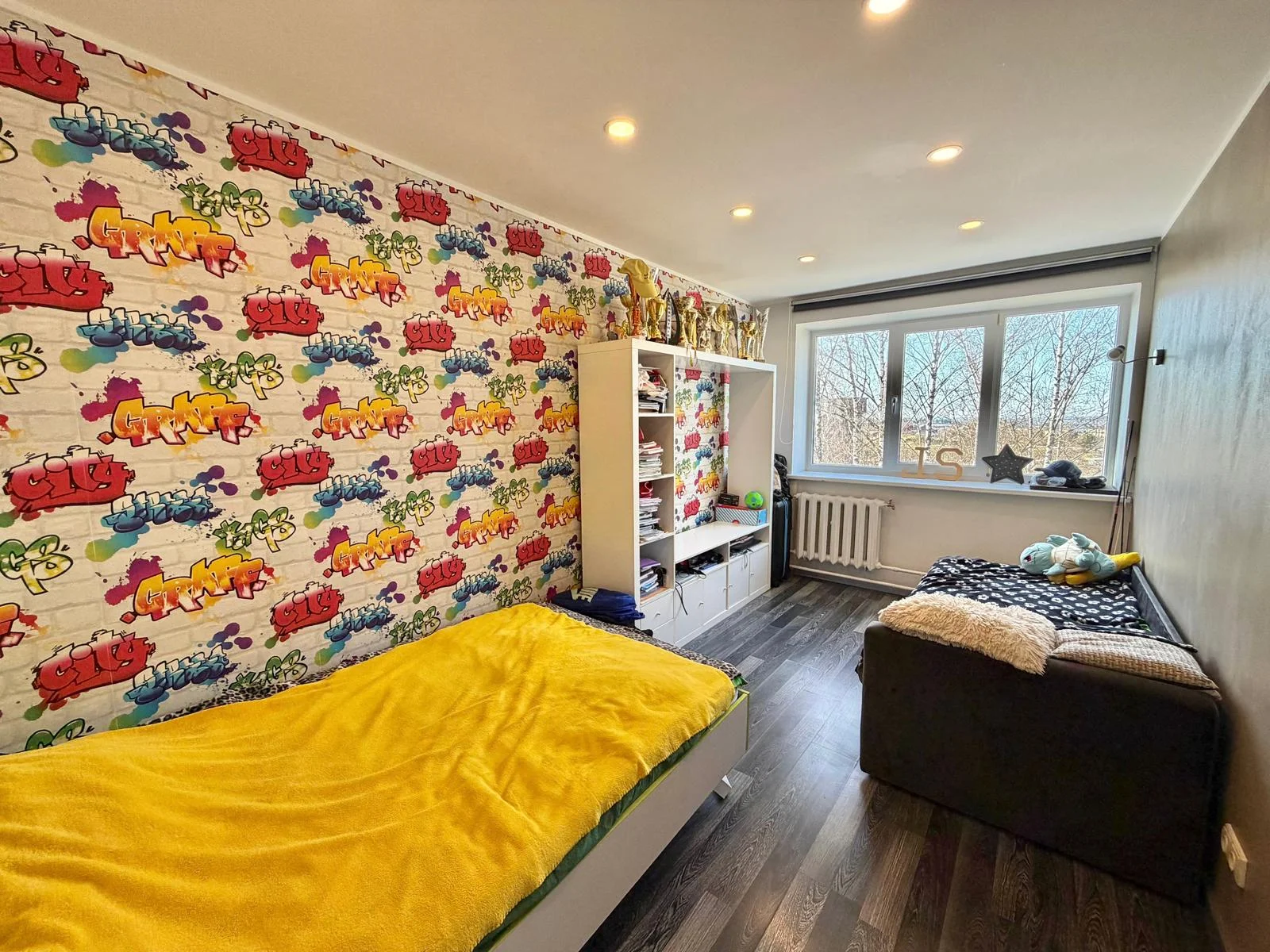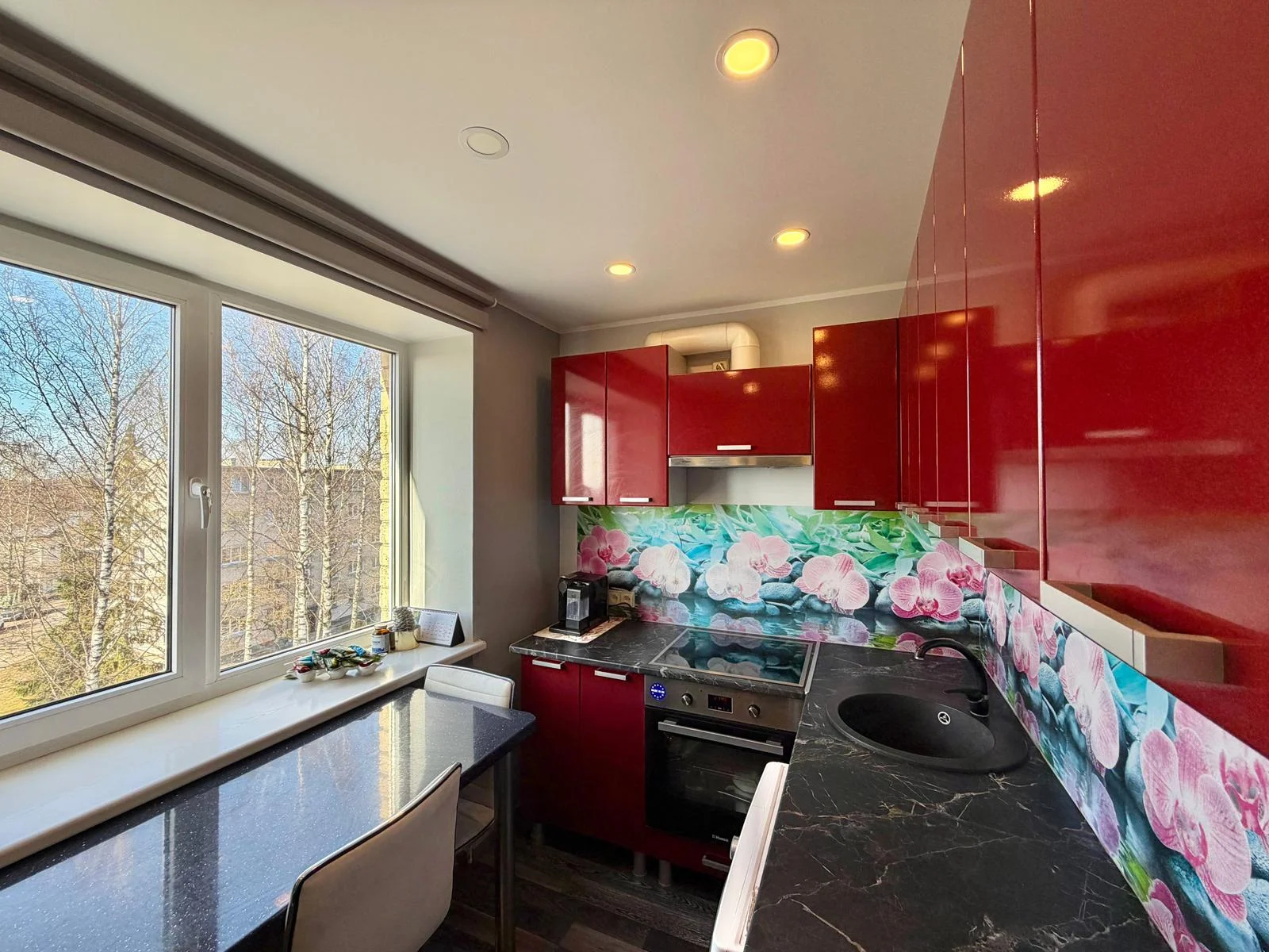 Platība – 48 m². Dzīvoklis atrodas 5. stāvā no 5, mājas vidū. Logi vērsti uz abām mājas pusēm, dzīvoklis gaišs un saulains.