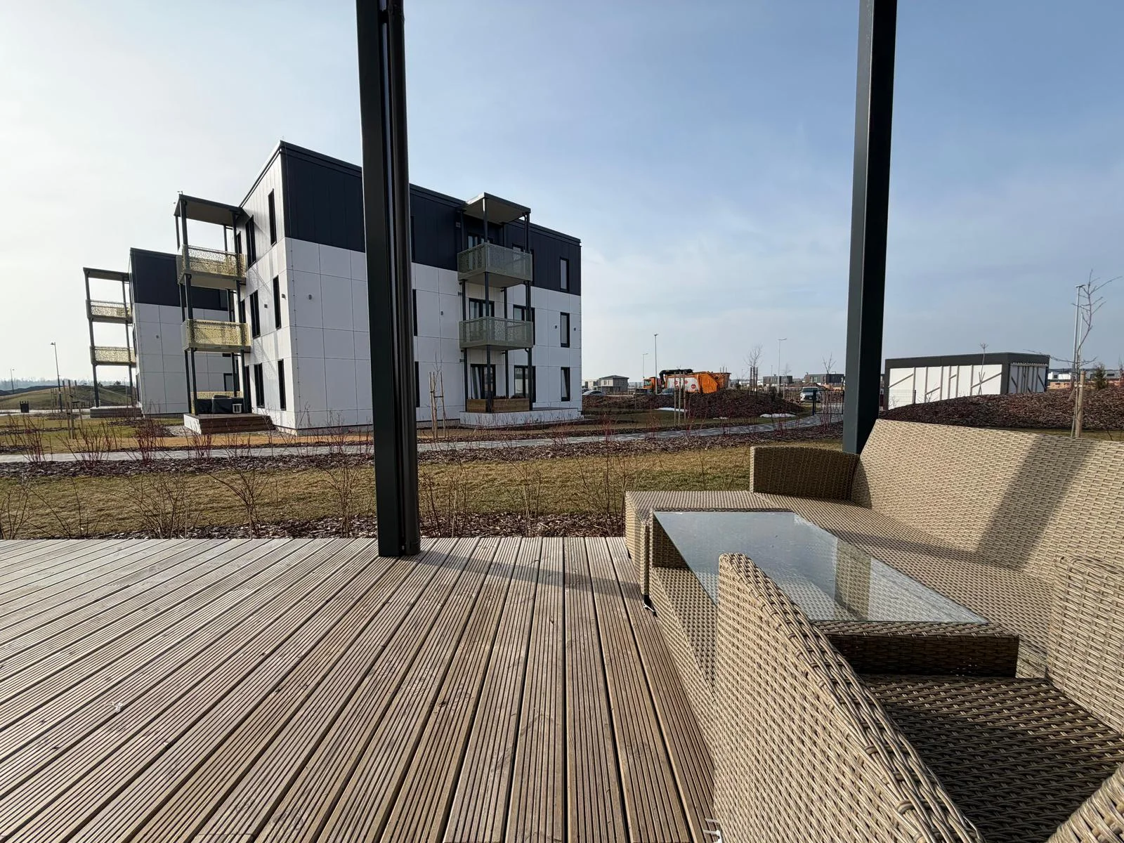 Plaša viesistaba apvienota ar virtuves zonu, divas izolētas guļamistabas, vannas istaba, atsevišķs WC un koridors ar ietilpīgiem iebūvētiem RIPO skapjiem. Liela terase būs lieliska vieta atpūtai, rīta kafijai vai mierīgiem vakariem svaigā gaisā.