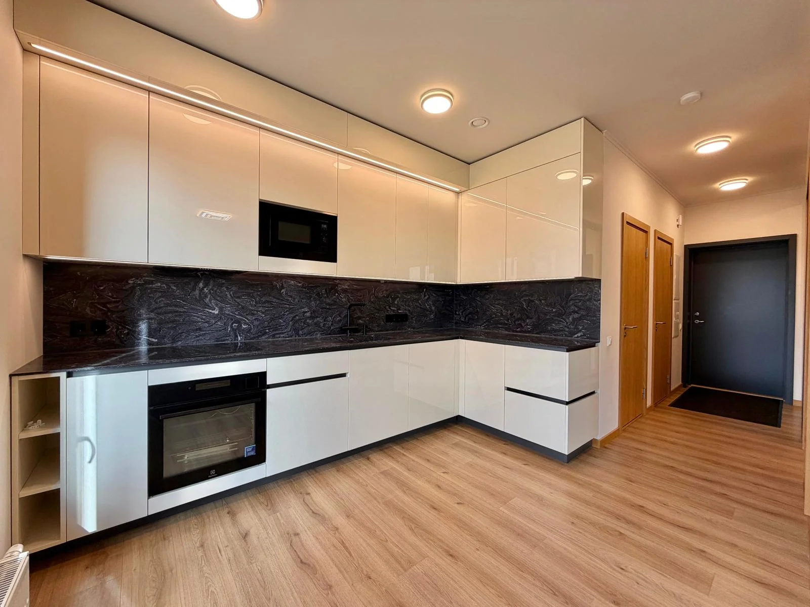 Dzīvoklis atrodas 2024. gadā ekspluatācijā nodotā jaunā projektā. Interjerā izmantota kvalitatīva apdare – ozolkoka lamināts, pilnībā aprīkota virtuve un Electrolux sadzīves tehnika ar garantiju. Īpašums tiek pārdots ar visām mēbelēm un sadzīves tehniku, kas redzama fotogrāfijās, ļaujot jaunajam īpašniekam ievākties uzreiz bez papildu ieguldījumiem.