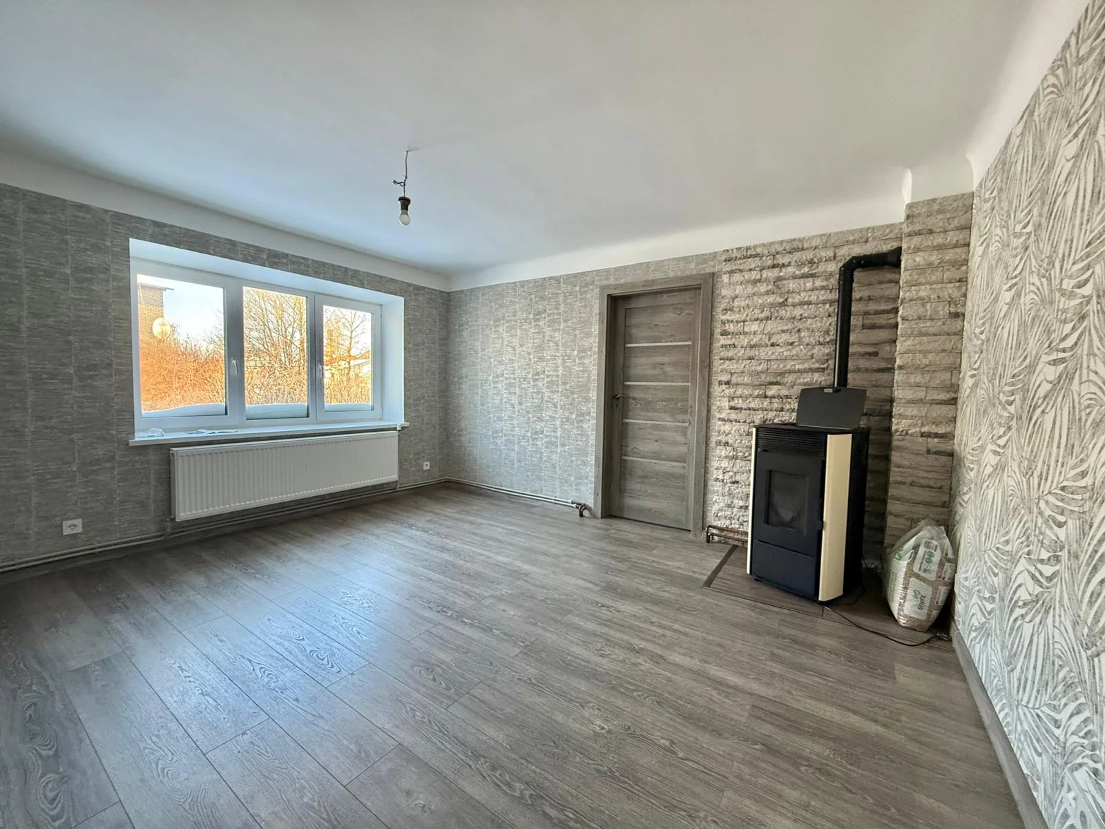 Plānojums: izolēta guļamistaba, viesistaba, atsevišķa virtuve, apvienota vannasistaba ar WC.