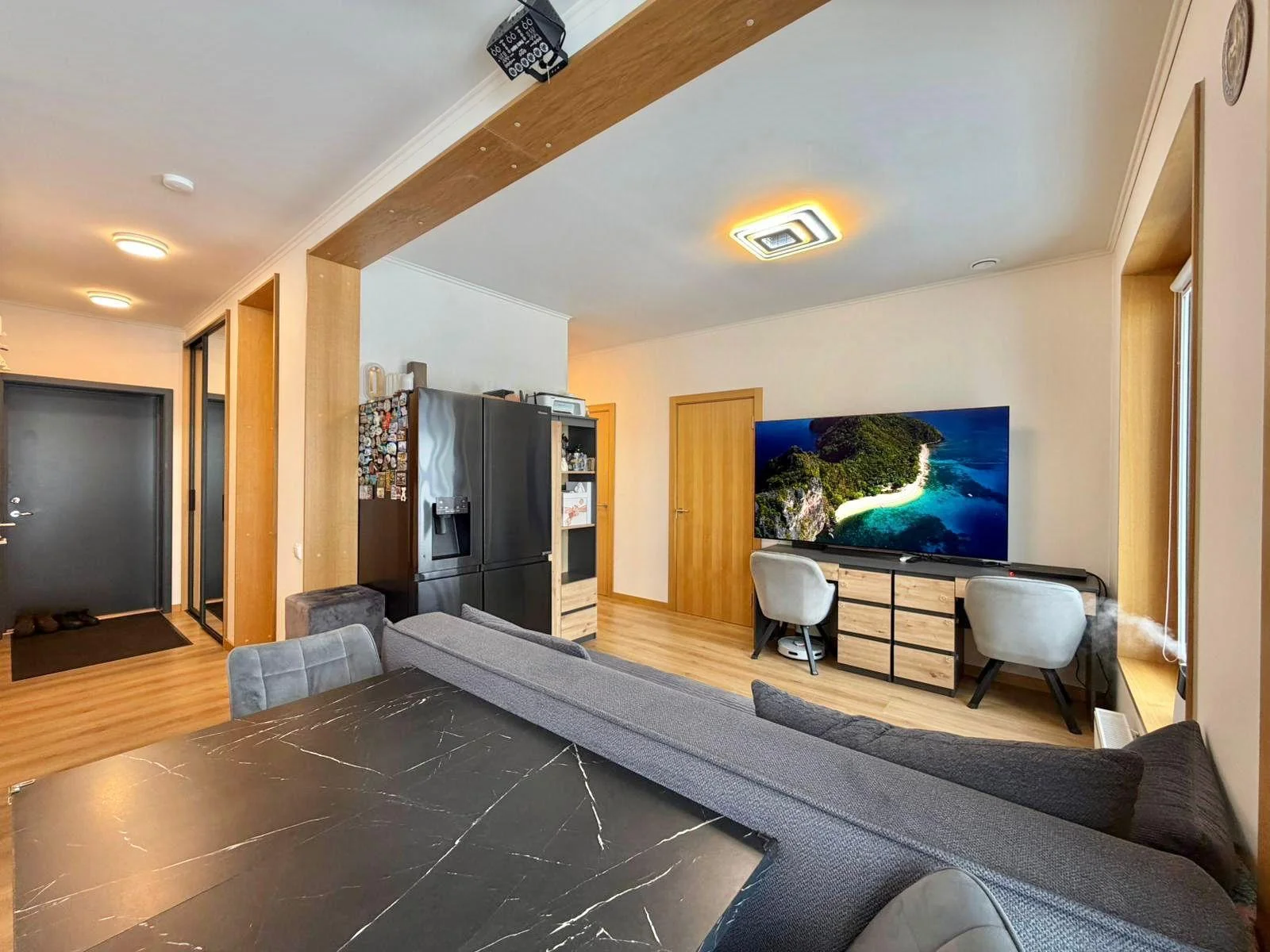 Pārdod dzīvokli Salienā – vietā, kur gribas palikt Ja meklē mājokli, kur apvienojas miers, kvalitāte un sakopta vide, šis dzīvoklis Salienā būs īstā izvēle. Dzīvoklis ar kopējo platību 76,7 m² (t.sk. 15,5 m² terase) piedāvā pārdomātu un ērtu plānojumu – plaša viesistaba ar virtuvi, divas izolētas guļamistabas, vannas istaba, atsevišķs WC un ērts koridors ar iebūvētiem skapjiem. Lielā terase kļūs par Tavu privāto atpūtas vietu. Dzīvoklis atrodas 2024. gadā ekspluatācijā nodotā ēkā un ir gaišs un mājīgs – lielie logi ielaiž daudz dabīgās gaismas un rada patīkamu plašuma sajūtu. Kvalitatīva apdare ar ozolkoka laminātu, pilnībā aprīkota virtuve, RIPO skapji un Electrolux tehnika (ar garantiju) ļauj ievākties bez papildu ieguldījumiem. A klases energoefektivitāte, rekuperācija un 3 pakešu logi nodrošina komfortu un zemas komunālās izmaksas. Apkuri iespējams regulēt individuāli un maksāt tikai par faktiski patērēto. Cenā iekļauta autostāvvieta. Pieejama arī slēdzama riteņu telpa. Dzīvoklis tiek pārdots mēbelēts (vai bez – pēc vienošanās) un ir gatavs ātrai nodošanai jaunajam īpašniekam. Saliena ir īpaša vieta – klusa, zaļa un sakopta vide ar parkiem, bērnu laukumiem un pastaigu vietām. Tajā pašā laikā viss nepieciešamais ir rokas stiepiena attālumā – skolas, bērnudārzi, sporta kompleksi, golfa laukums un iepirkšanās centrs. Līdz Rīgas centram – 20 minūtes, līdz Jūrmalai – 5 minūtes.