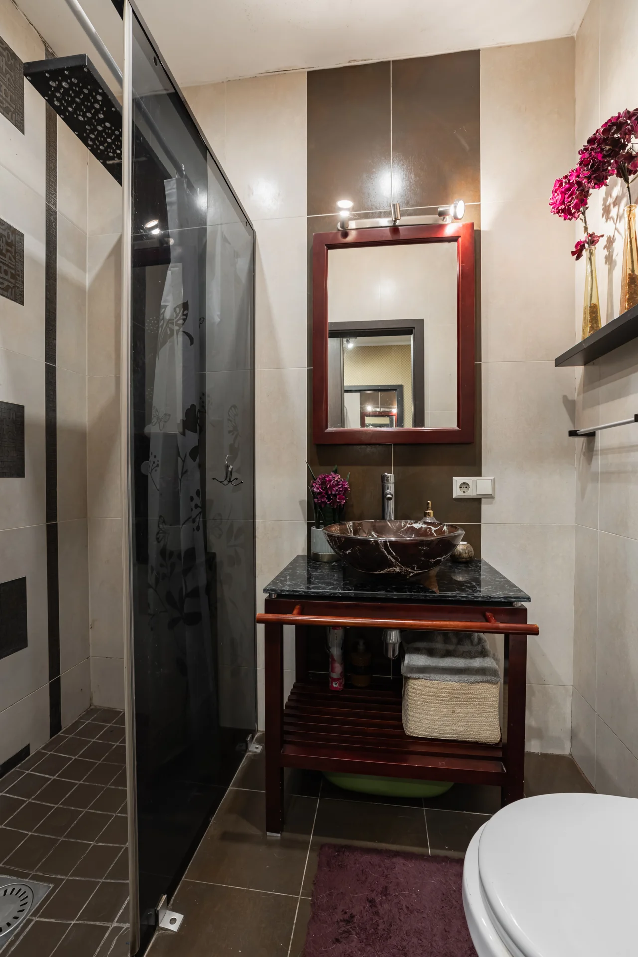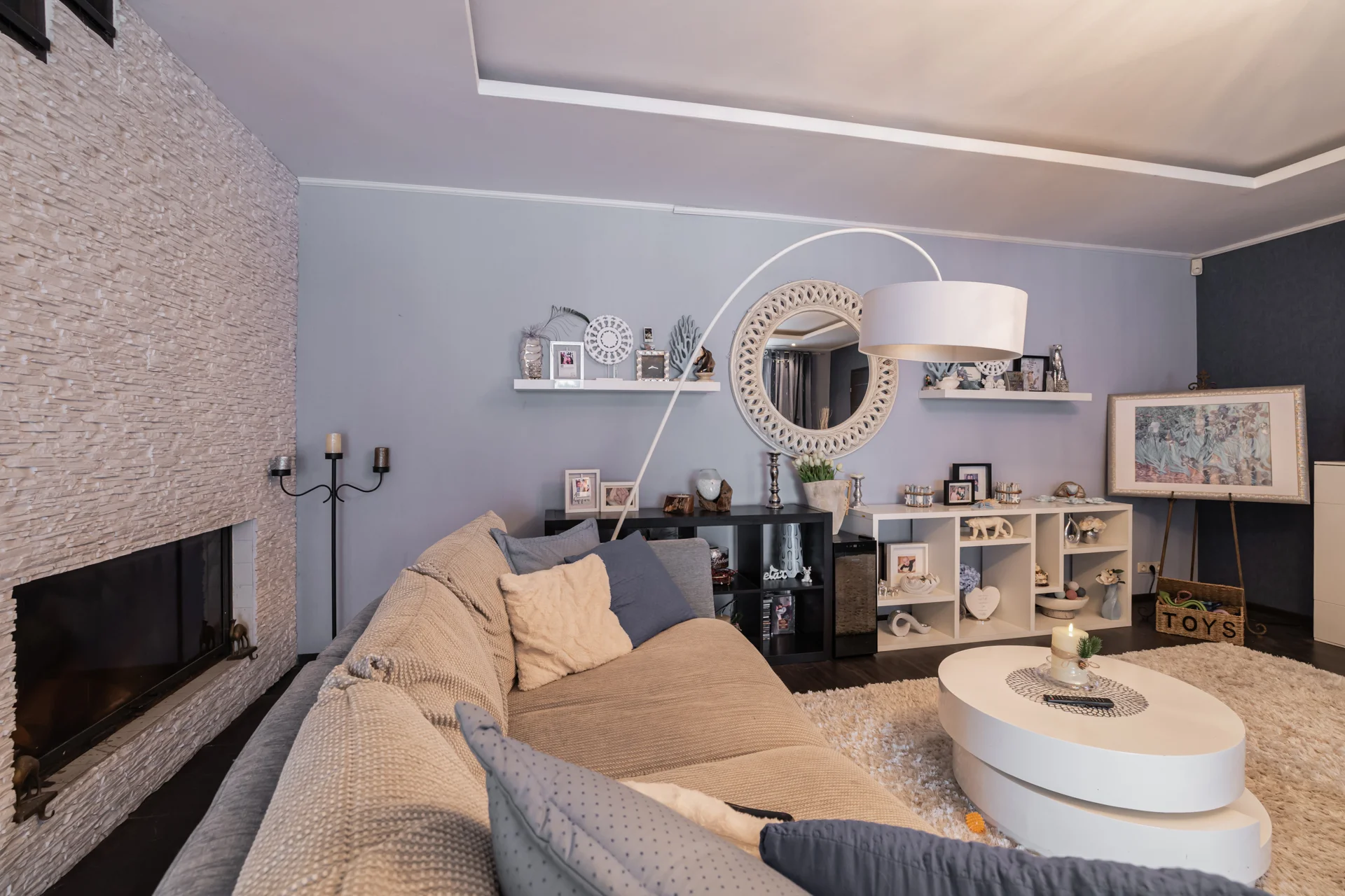 Viesistabā ir kamīns. No viesistabas ir izeja uz nelielu terasi.