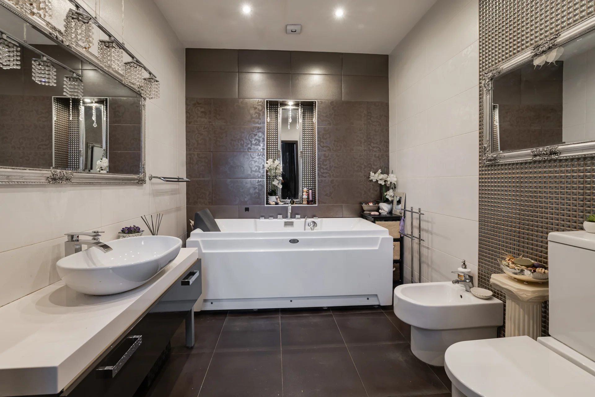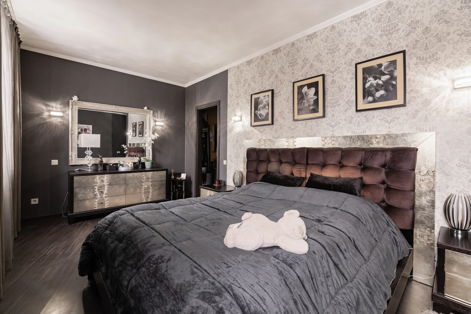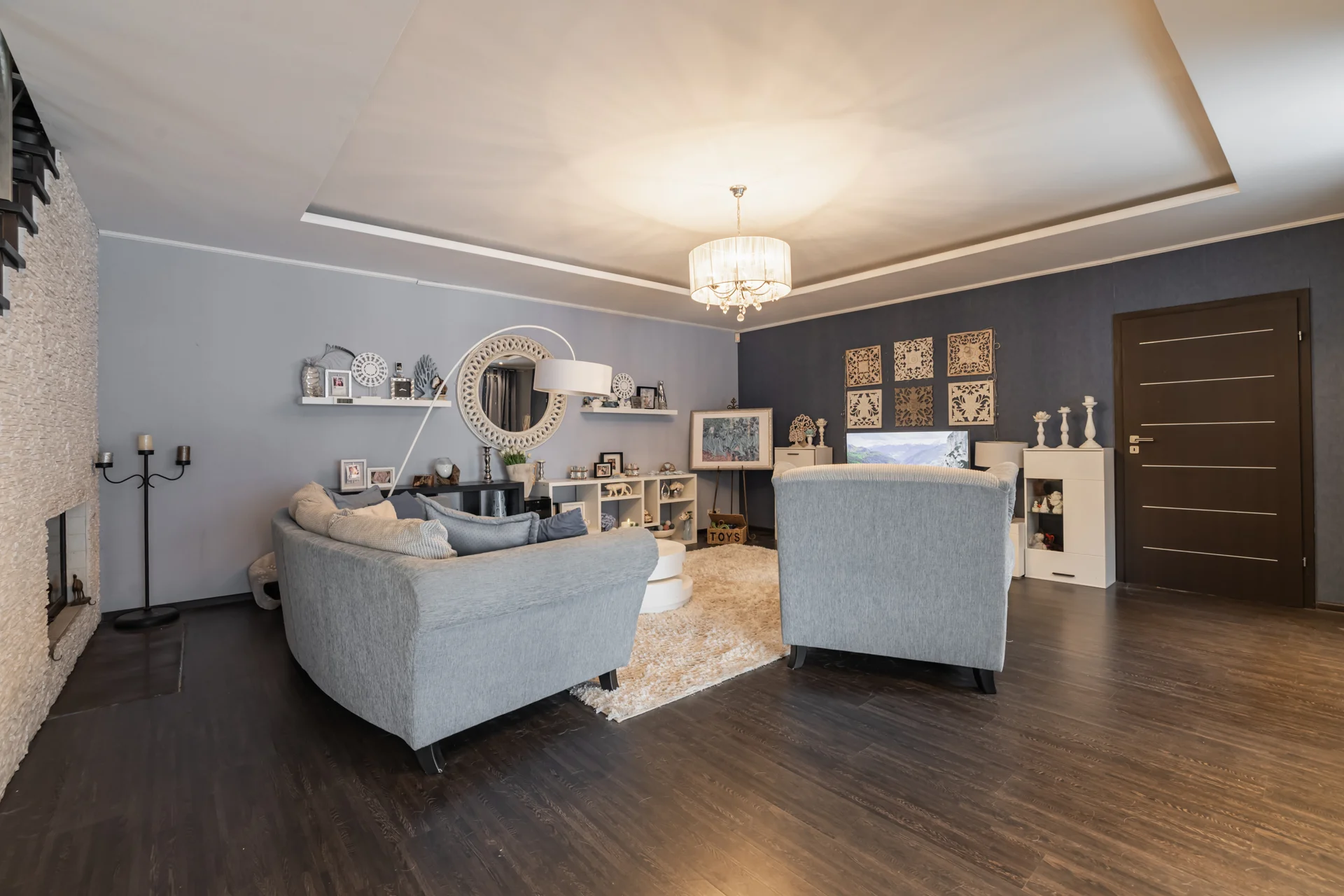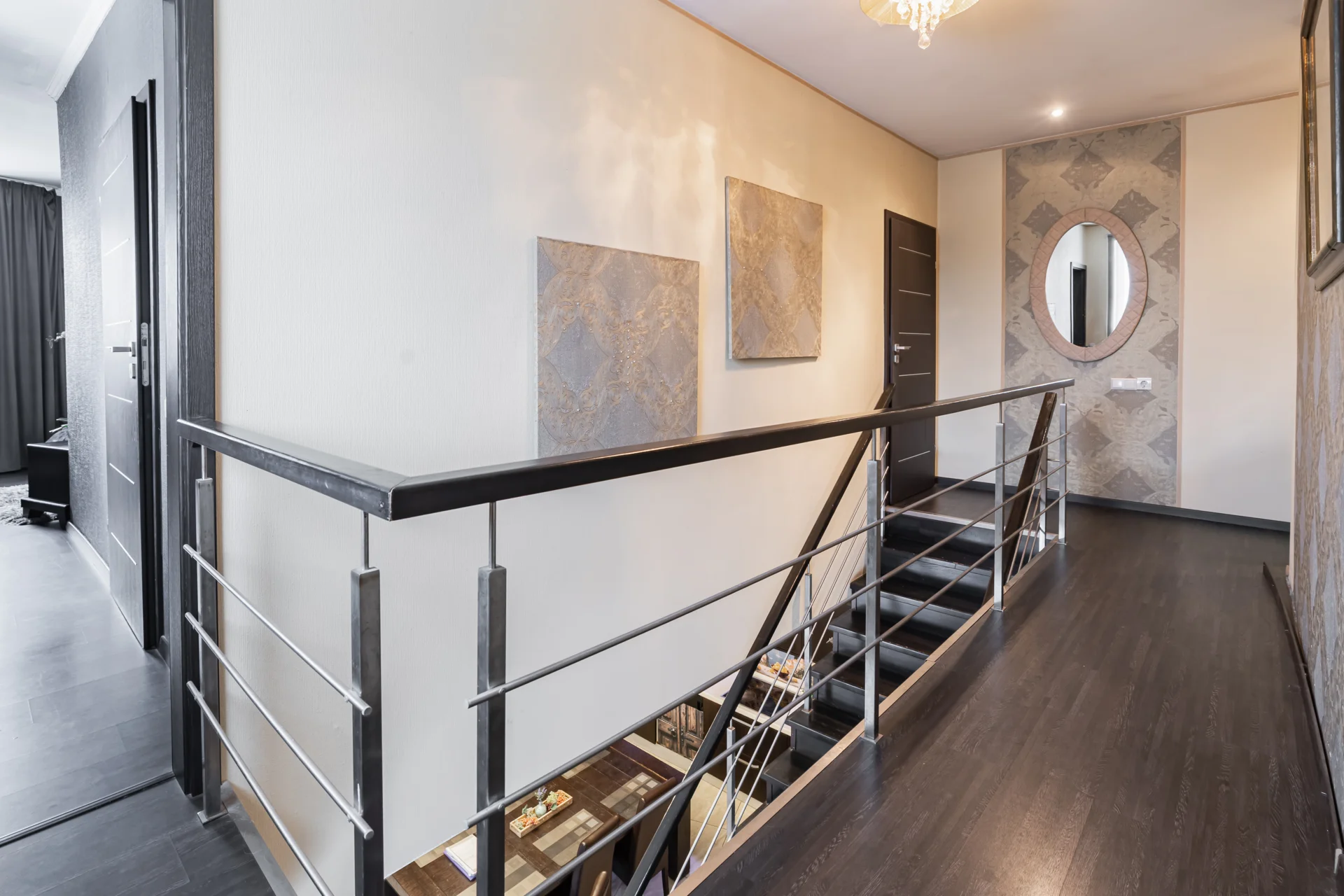 Tajā ir 5 istabas – pirmajā stāvā viesistaba un viena guļamistaba, kuru var pārveidot par darba kabinetu, bet otrajā stāvā 3 guļamistabas, no kurām divas ir ar savām vannas istabām, bet “master bedroom” arī ar garderobes telpu.