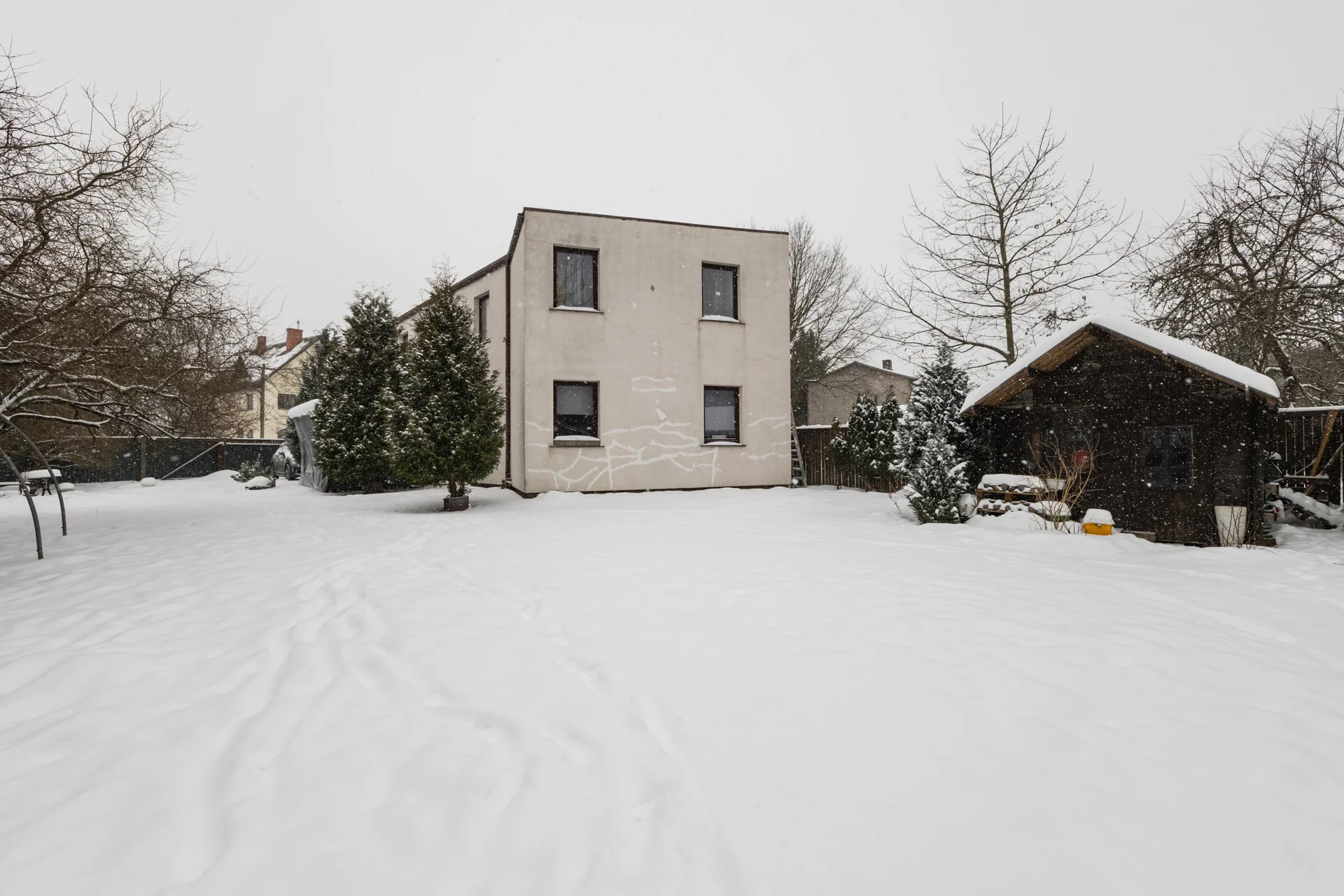 Mājas kopējā platība ir 201 m2, bet iežogota un labiekārtota (zālājs, bruģis) zemes gabala platība ir 424 m2.