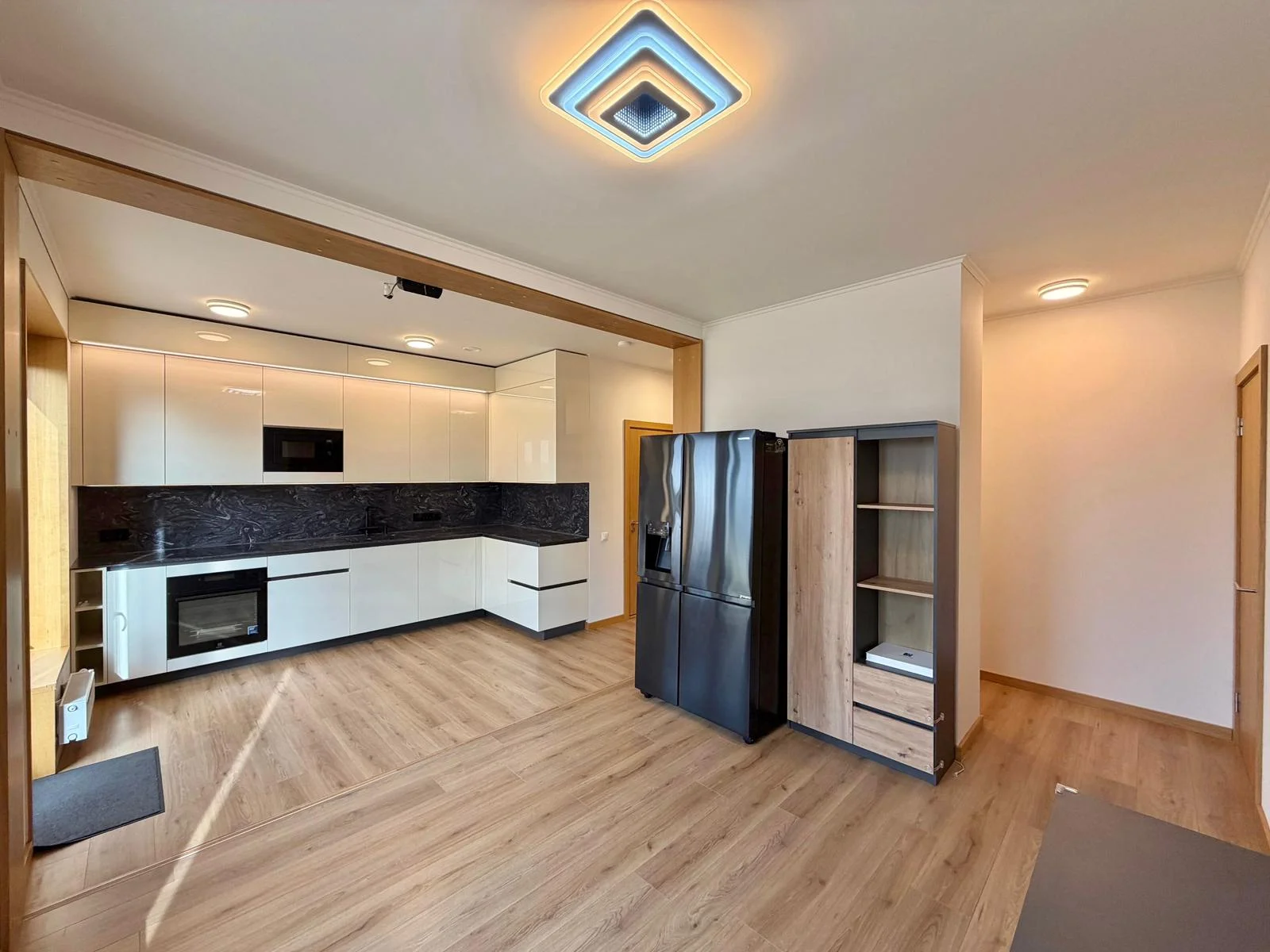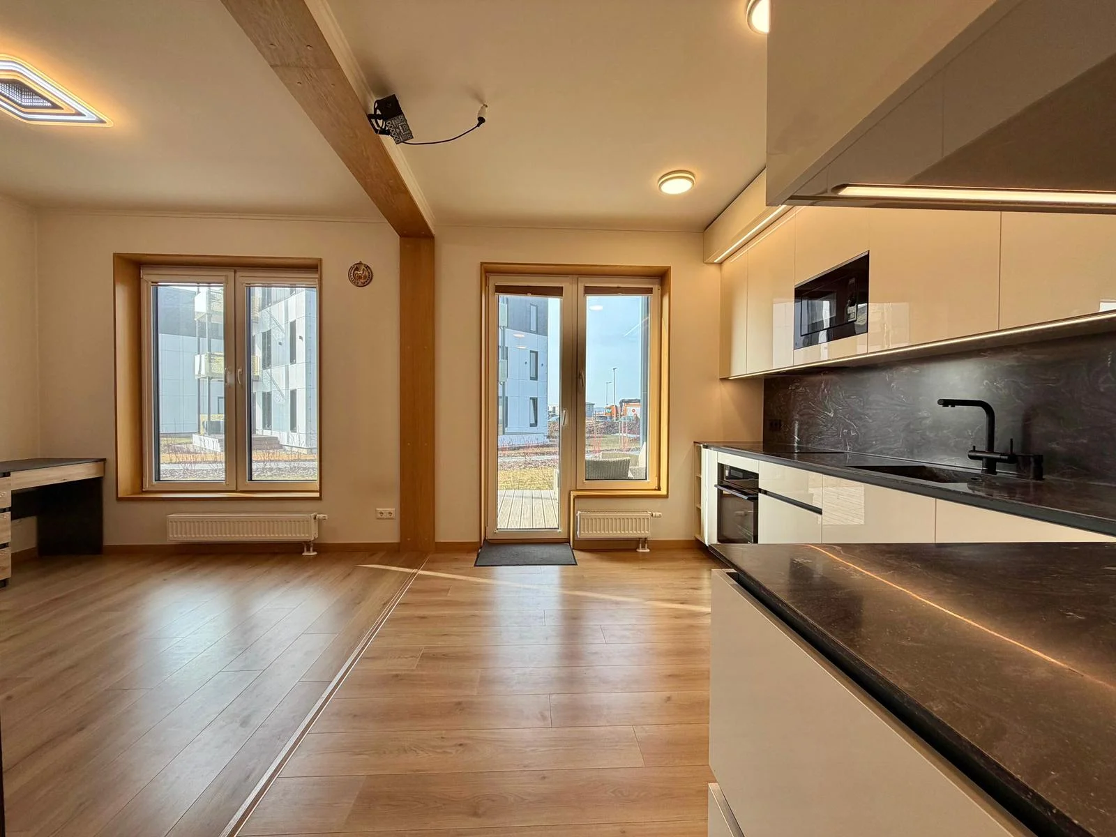 Dzīvoklis atrodas 2024. gadā ekspluatācijā nodotā jaunā projektā. Interjerā izmantota kvalitatīva apdare – ozolkoka lamināts, pilnībā aprīkota virtuve un Electrolux sadzīves tehnika ar garantiju. Īpašums tiek pārdots ar visām mēbelēm un sadzīves tehniku, kas redzama fotogrāfijās, ļaujot jaunajam īpašniekam ievākties uzreiz bez papildu ieguldījumiem.