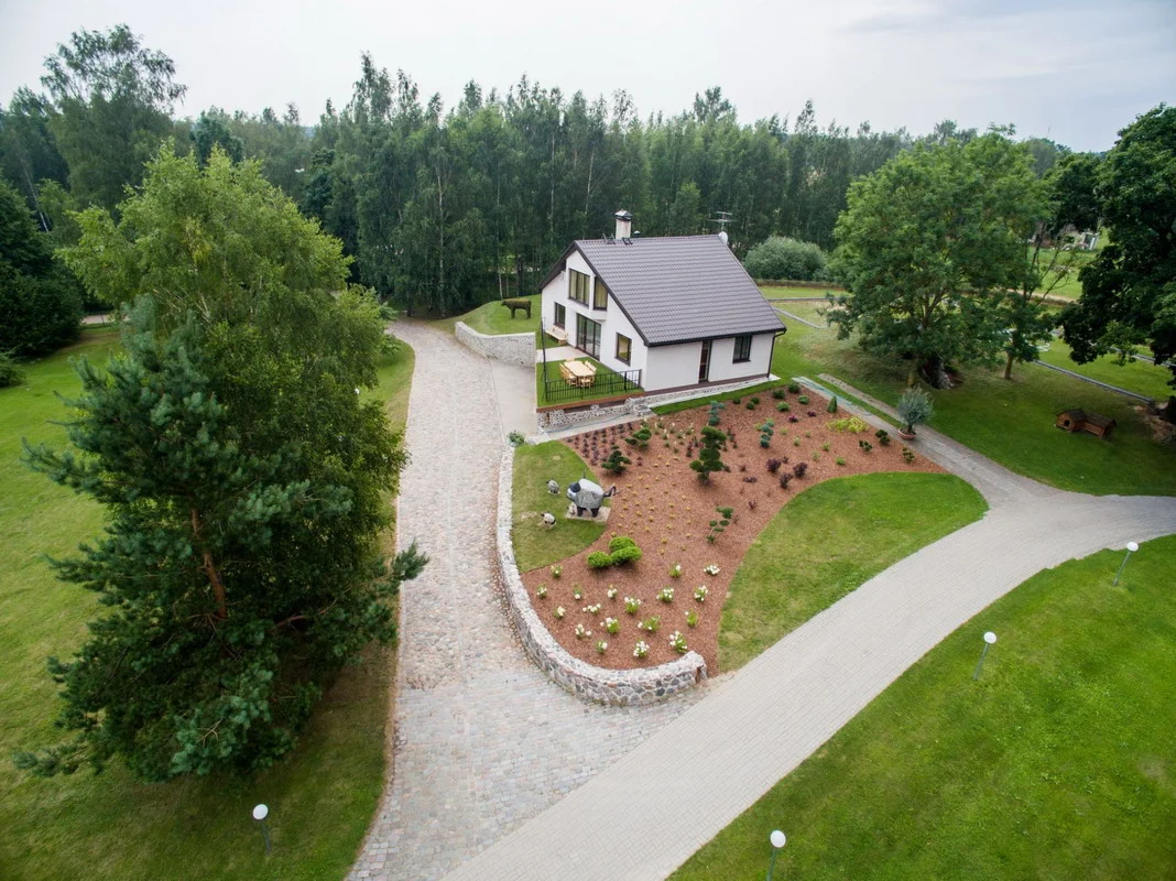 Trīs stāvu dzīvojamās mājas platība ir 257 m2 un tajā ir viesistaba, virtuve – ēdamistaba, 3 guļamistabas, 4 sanmezgli, vairākas palīgtelpas un plaša terase, gaumīgi iekopta reljefa teritorija.